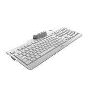 Available from Keyboard Specialists (KBS) is the CHERRY JK-A0400 Secure Board 1.0. This keyboard is an ergonomic keyboard with an integrated reader for smart cards and cards/tags with an RF/NFC interface. For added security and confidentiality, the keyboard can be switched to a secure mode. Now the device can authenticate itself with a certificate and the key transmission is encrypted. This renders hardware key loggers useless and because the standard keyboard channel is locked, Bad USB attacks cannot be carried out on it. Thin clients that have the necessary software integrated are particularly suitable for using these functions.