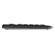 To connect the flat wireless keyboard, simply place the included nano-USB dongle in the USB port of your desired device - done. The installation is quick and easy via plug & play. You then benefit from an almost interference-free connection via 2.4 GHz radio. The keyboard has a range of up to 10 meters. In its proven full-size layout, the CHERRY KW 3000 not only has a cursor and number pad as well as the F1 to F12 keys, but also four additional keys. This gives you quick access to your calculator, email, browser and sleep mode. With our free CHERRY KEYS software you have the opportunity to individually assign the F and special keys on your PC wireless keyboard. Directly above the additional buttons is the battery status indicator, which tells you when it is time to change the battery. The keyboard only requires one AA battery.