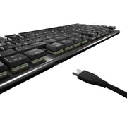 The CHERRY MX 10.0N RGB keyboard owes its low profile to the MX LOW PROFILE SPEED switches. The linear switching characteristic ensures that neither haptic feedback is felt nor a clicking noise is heard when the keys are pressed. Nevertheless, you immediately get the inimitable MX feel with every keystroke. The switching point takes effect after actuation of just one millimeter. It is therefore not necessary to push the key all the way down. The CHERRY MX LOW PROFILE RGB SPEED switches trigger at lightning speed and register every keystroke. This gives you an immense advantage in gaming sessions, as you can react immediately. In addition, the switches can easily withstand more than 100 million actuations per key and are therefore absolutely durable.