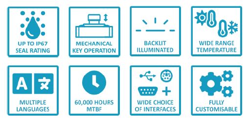 The128-key ruggedised keyboard integrated with a touchpad has an IP67 rating plus stainless steel (304) construction. Hence, it is protected from dust and liquid intrusion, with added resistance to corrosion and abrasion. Therefore, it is perfect for tough applications and washdown areas.
