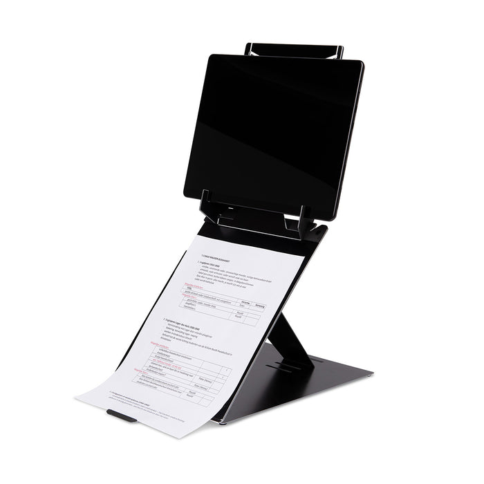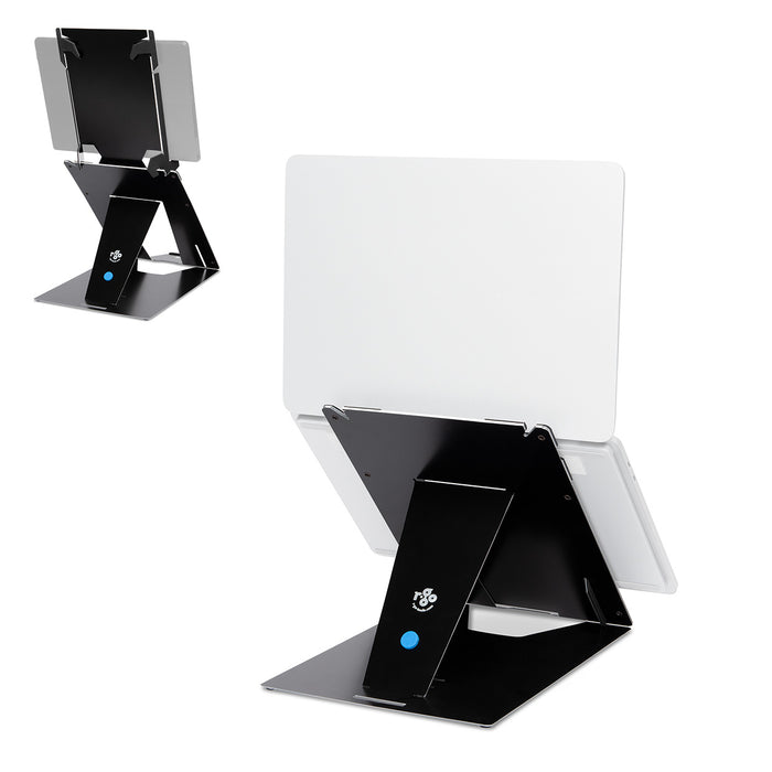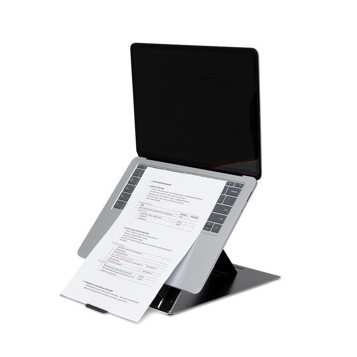 The R-Go Riser Duo laptop and tablet stand can be used to raise both your laptop and tablet. The stand is easily adjustable in height in 4 positions, so you can always work at eye level. This brings your head in a natural position and reduces tension in your neck and shoulder muscles.