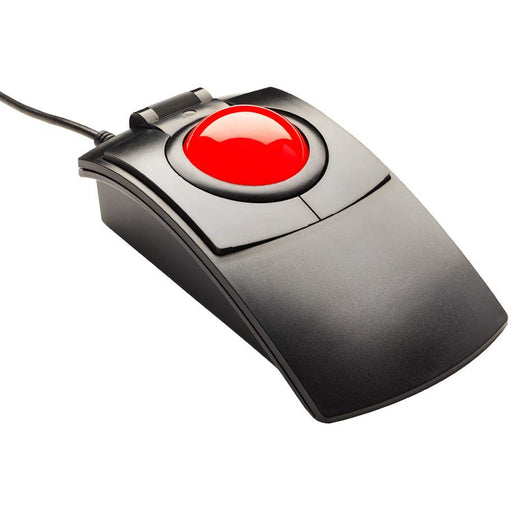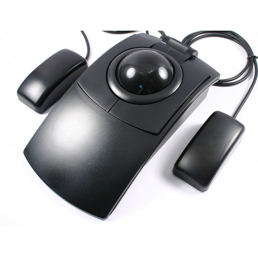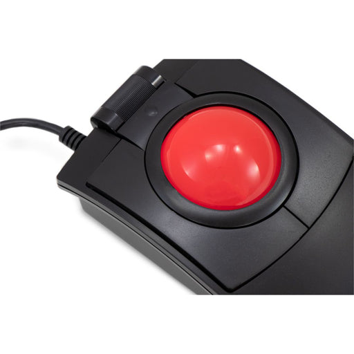 Black USB Laser Trackball with black buttons, red scroll wheel with red LED. Two additional input jacks are located at top of Trackball allow you t...