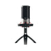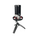 What immediately catches the eye with this streaming microphone is the high-quality workmanship: The three-legged base is made entirely of metal and ensures a firm and secure stand at all times. The minimalist design in black with matt silver looks discreet and elegant at the same time. As a visual highlight, the rubber bands for the shock mount function give the microphone the finishing touch. These are in the familiar CHERRY red - designed in Germany.