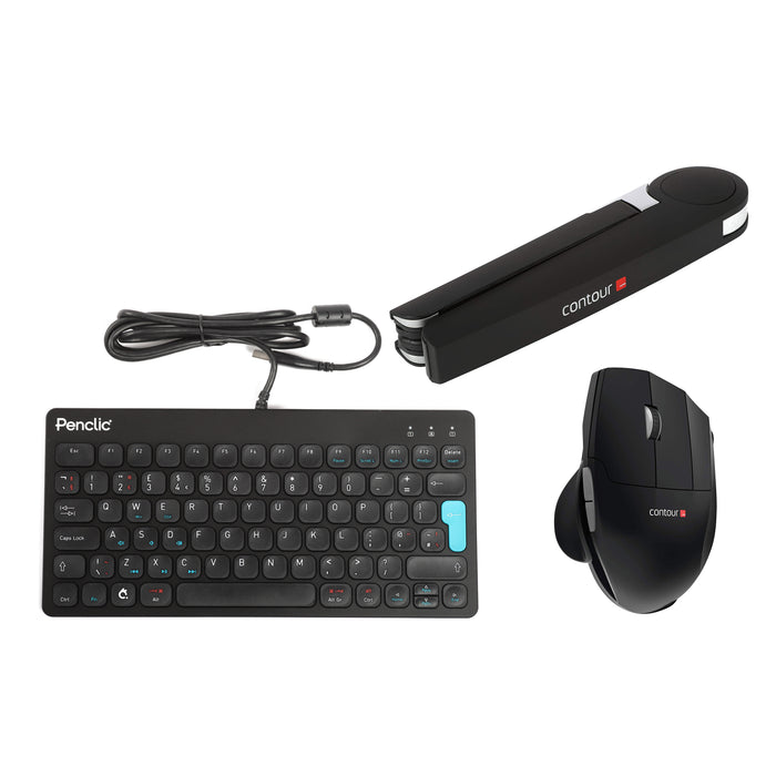 The Unimouse Laptop Travel Kit includes an adjustable Unimouse, Penclic C3 Compact Keyboard and Contour Laptop Stand. This combination allows for healthy working whilst using your laptop. For those on the move, it’s easily stowed away in your rucksack or bag.
