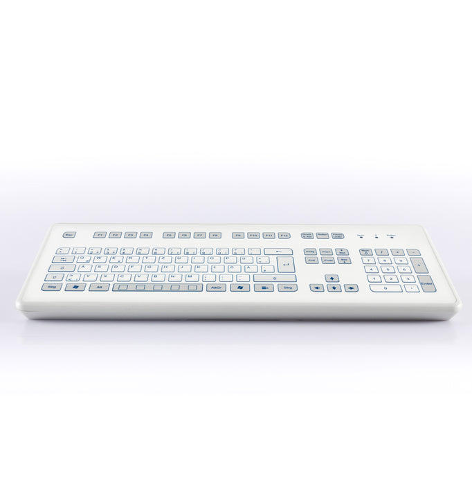 The rugged TKS-105c-KGEH desktop keyboard has a chemical, abrasion and scratch-resistant front sheet.