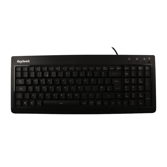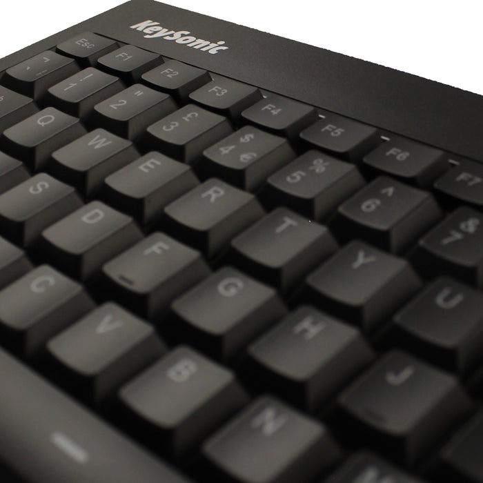 The compact, gaming keyboard manufactured from Keysonic is produced with a soft touch key technology under each key.