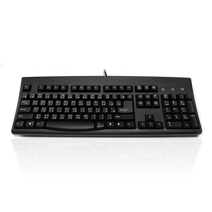 This full-size keyboard integrates with professional UV-coated stickers to transform this keyboard into any international language.