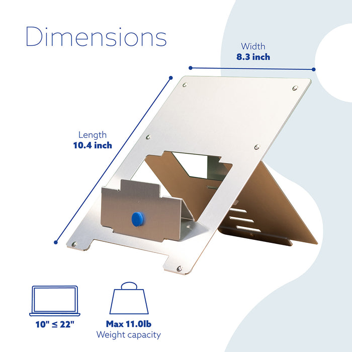 This laptop stand is easily adjustable in 5 different heights. This way, you always work at eye level and prevent a hunched posture and neck and back complaints. Very comfortable to use in the office, at home or on the road. It places your head in a natural position and reduces tension in your neck and shoulder muscles.