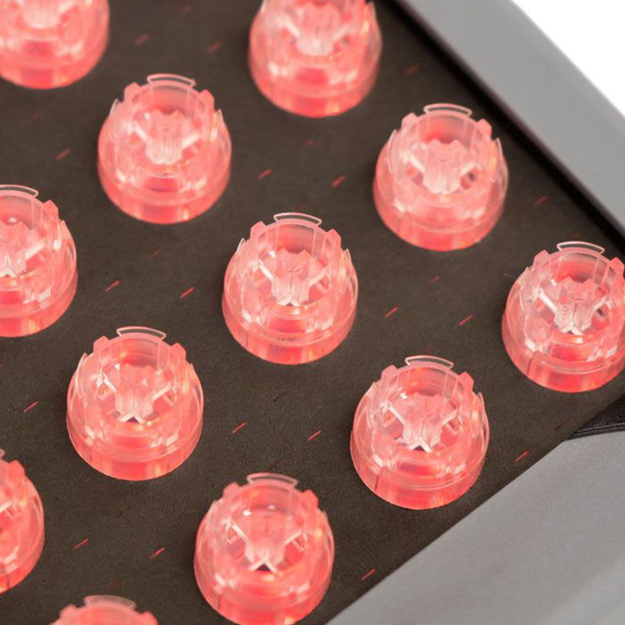 The X-keys backlighting LEDs were designed for exactly what their name implies, backlighting. The transparent ABS deck under the keys distributes light to provide an even glow behind all keys in a group. In applications where it is desirable to use the LEDs as an indicator and to limit the bleed over from key to key, this black paper mask blocks light from the underlying deck so the light from under the individual keys is emphasised.