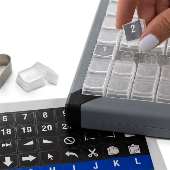 The X-keys XK-80 keypad is a unique programmable kit designed for broadcasting and media environments and lays out 80 re-programmable keys which can then be set up to assist with macros, shortcuts and any other function. Designed for low lit areas with red and blue backlighting, this keypad can be customised by putting on and using your own specialist keycaps and key blockers, creating this keypad to be used in any environment or industry. Use quad keycaps to create large keys, tall and wide keycaps and even key blockers to create your ideal programmable kit.