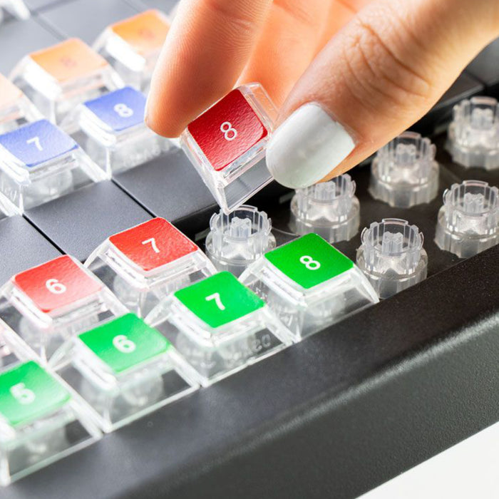• M1 – M8 on single, clear acrylic keys with a white background.